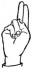 На ћирилици написано КОСТАДИН ЧАЈЕТИНАЦ састоји се из 17 слова [?]. Исписано ћириличном једноручном азбуком за глувонеме:
